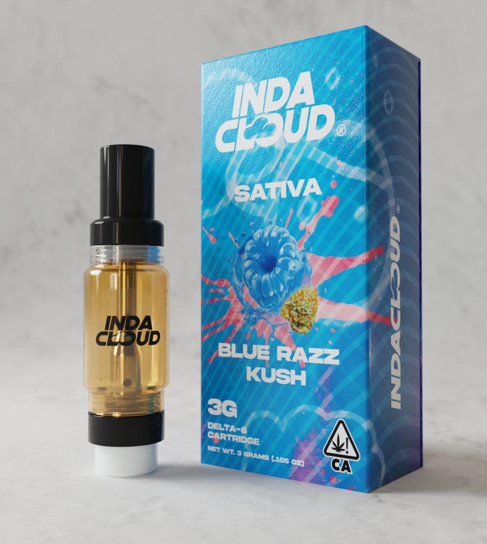 Indacloud 3G Delta 8 Cartridges - Blue Razz Kush (Sleeve of 5)